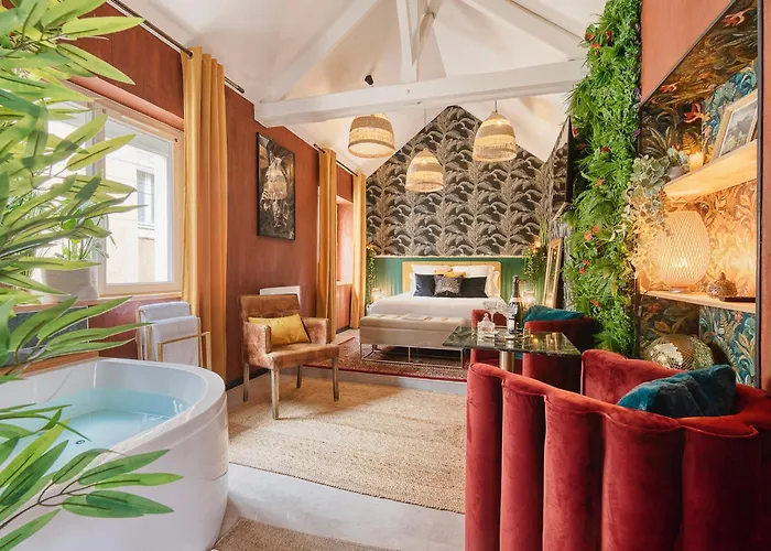 تقع Suite Avec Jacuzzi - Le Boudoir De La Loire Chalonnes-sur-Loire بمساحة 40 مترًا مربعًا على بعد 5 دقيقة سيرا على الأقدام عن Eglise Saint-Maurille de Chalonnes، وتوفّر للضيوف سهولة الوصول إلى العديد من مناطق الجذب السياحي القريبة. تحتوي الشقة المكونة من 1 غرفة نوم على الحوض الساخن وتوفّر تجربة أكثر هدوءًا.